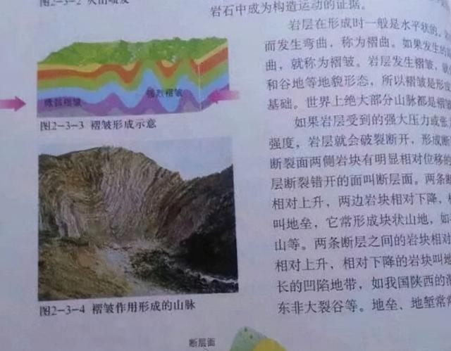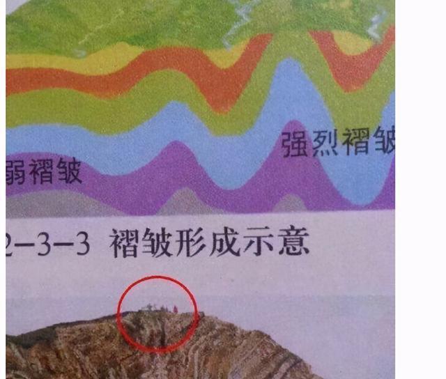于是就在网上分享了这个有趣的事情,真的在书本上其中一幅“褶皱作用形成的山脉”插图上有几个小身影,看上去和唐僧师徒四人颇为相像。