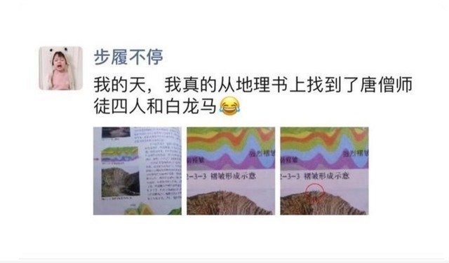 不过有网友却好像发现了学习地理的乐趣,因为他在高一的地理教材上“找到了”唐僧师徒四人。